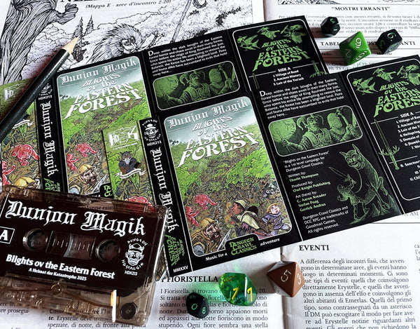 After "The Sky ov the Crimson Flame," it's time for a powerful new collaboration between HDK and Owl Knight Publishing! With "The Blight ov the Eastern Forest," the musical ensemble known as Dunjon Magik has surpassed itself in creating the soundtrack for this second chapter in the trilogy about the dark necromancer Balrothhariid. In the forest, our heroes will face unimaginable dangers: will they survive and complete their mission? Horrors of all kinds, bizarre and original situations, plot twists, and references to childhood cartoons await!